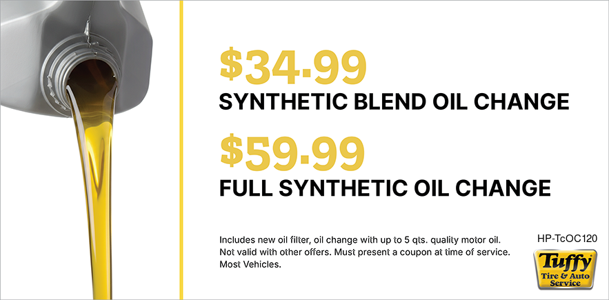 Good only atTuffy Pelham Expires 07/15/26 Schedule Service Print coupon Share to Google Share to Facebook Share to Yelp Offer details Oil Change $34.99 Synthetic Blend $59.99 Full Synthetic * See coupon for exclusions. Email Coupon First name * Last name * Email address * Sign me up to receive future offers via text from Tuffy Pelham: Via Text Cell/Mobile Phone By clicking "I accept" below, I expressly agree to receive marketing text messages made by or on behalf of Tuffy Pelham to the telephone number(s) I’ve listed above. I understand that I may receive such text messages by the use of Automatic Telephone Dialing Systems (including “Predictive Dialers” or “Autodialers”) and I agree to receive them even if I have registered my number(s) with my state or federal Do-Not-Call list(s). I understand that such text messages will include advertising containing offers for goods or services and that I may revoke this consent at any time by telephone, return text message or by Visiting tuffypelham.com/stop to unsubscribe. Message and data rates may apply. I also understand that I am NOT required to provide this consent as a condition of purchasing goods or services. I accept View: Text Specials Terms and Conditions with this link.