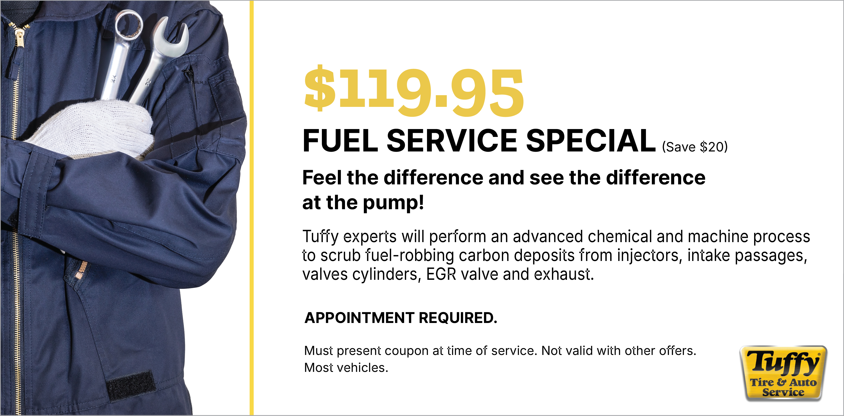 Good only atTuffy Pelham Expires 07/15/26 Schedule Service Print coupon Share to Google Share to Facebook Share to Yelp Offer details $119.95 Fuel Service Appt. Required * See coupon for exclusions. Email Coupon First name * Last name * Email address * Sign me up to receive future offers via text from Tuffy Pelham: Via Text Cell/Mobile Phone By clicking "I accept" below, I expressly agree to receive marketing text messages made by or on behalf of Tuffy Pelham to the telephone number(s) I’ve listed above. I understand that I may receive such text messages by the use of Automatic Telephone Dialing Systems (including “Predictive Dialers” or “Autodialers”) and I agree to receive them even if I have registered my number(s) with my state or federal Do-Not-Call list(s). I understand that such text messages will include advertising containing offers for goods or services and that I may revoke this consent at any time by telephone, return text message or by Visiting tuffypelham.com/stop to unsubscribe. Message and data rates may apply. I also understand that I am NOT required to provide this consent as a condition of purchasing goods or services. I accept View: Text Specials Terms and Conditions with this link.